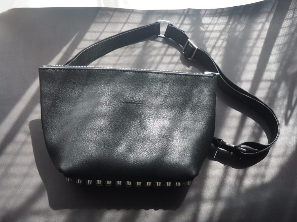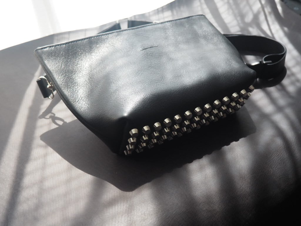 底面に一列に並んだスタッズがミニマルなフォルムに強烈な個性をプラス。スタッズの重厚感がバッグ全体のシルエットを美しく保ちます。