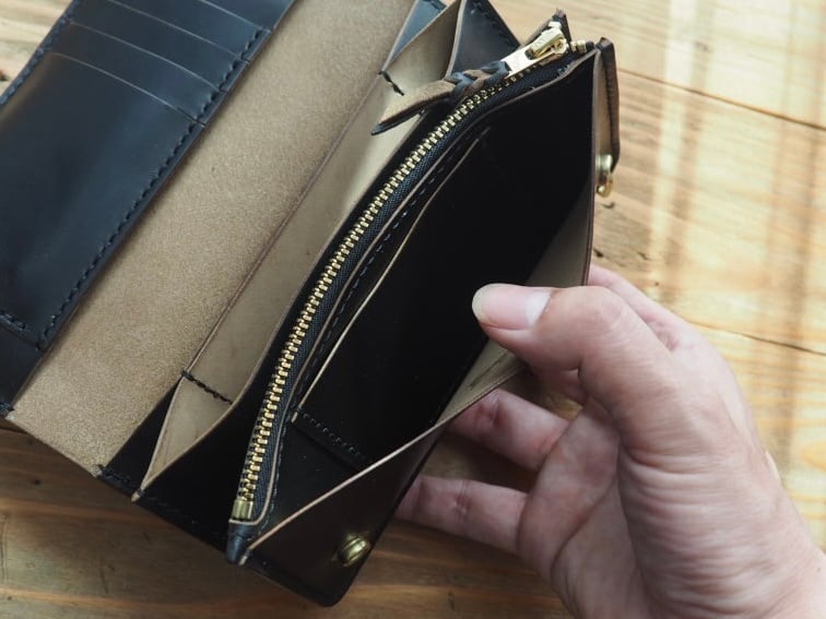 ハンドメイドのレザーウォレットになります